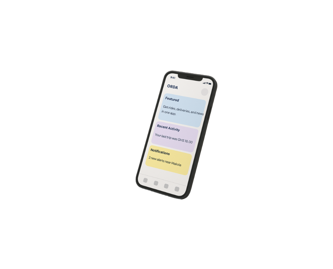Enlist Your BusinessThe founding team—all born and raised in the neighborhoods we serve—designed ORDA RIDES to run on low-bandwidth networks and affordable devices. That means 4× faster load times and 80% lower data usage than conventional ride-hailing platforms. Every line of code reflects the realities of Ghanaian streets—and the dreams of those who walk them.